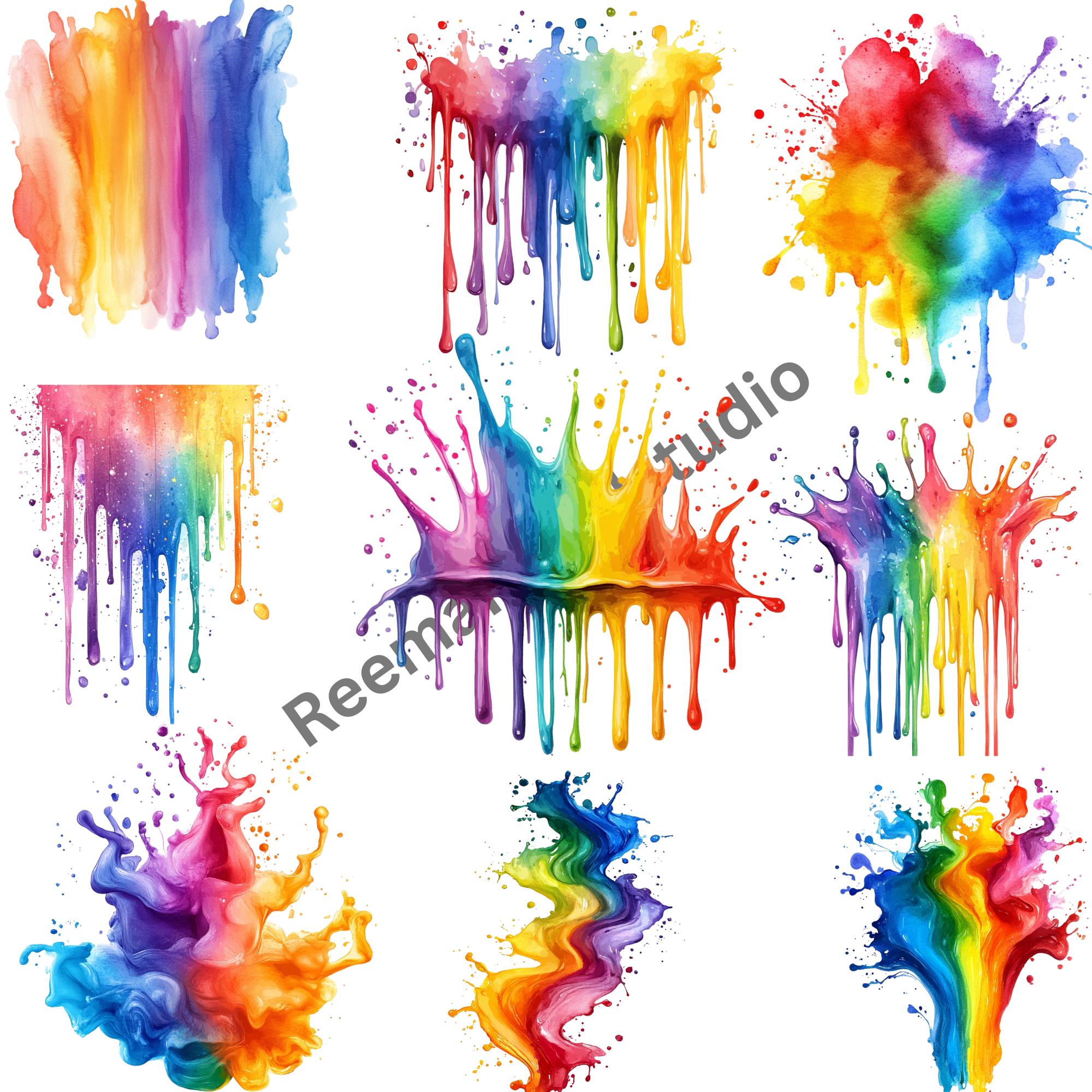 Rainbow Paint Splash Clipart Bundle | 23 Colorful PNG Files for Crafts, Scrapbooking & Digital Design