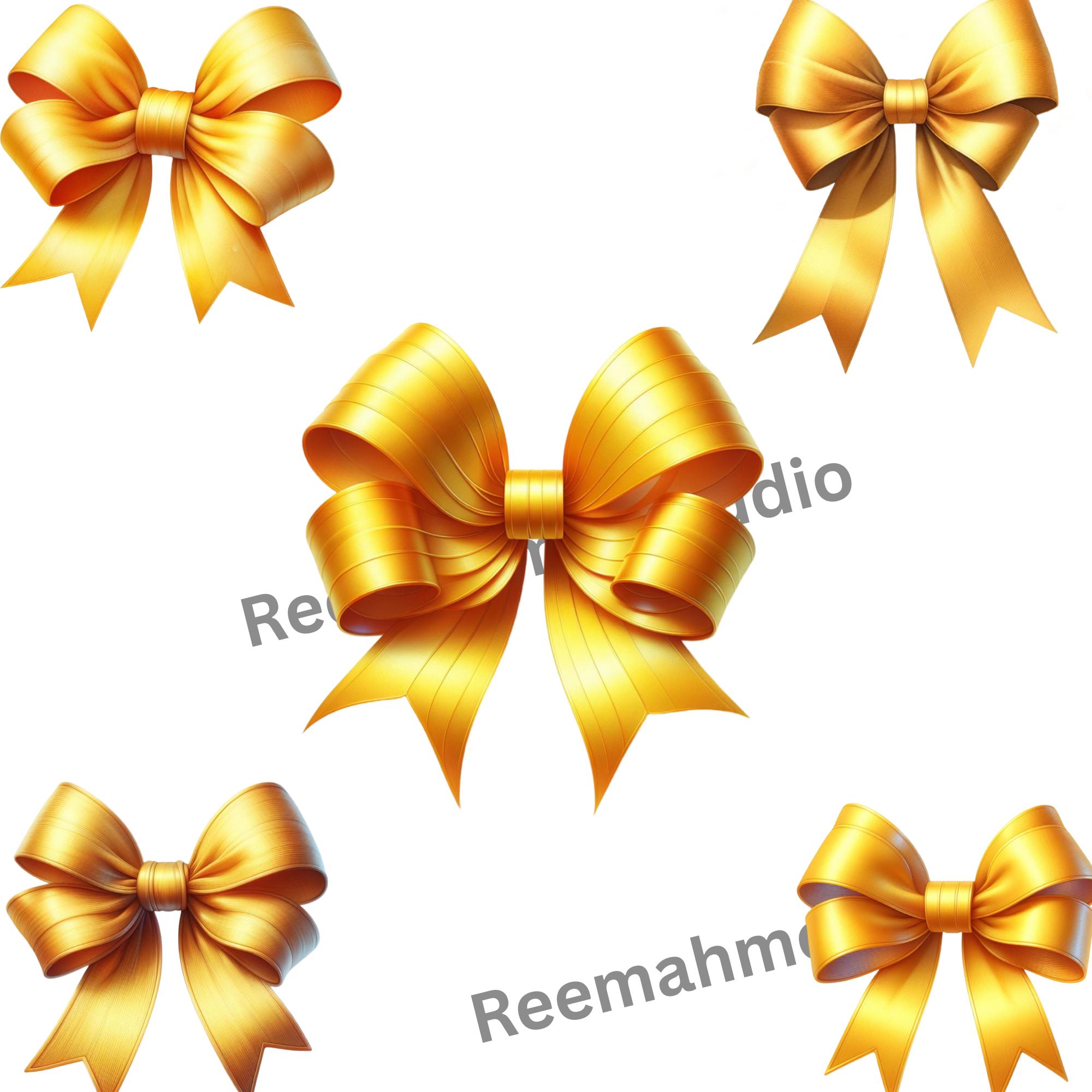 Yellow Bow Clipart Bundle – 28 PNG Files, Digital Ribbon Graphics for Crafts & Sublimation